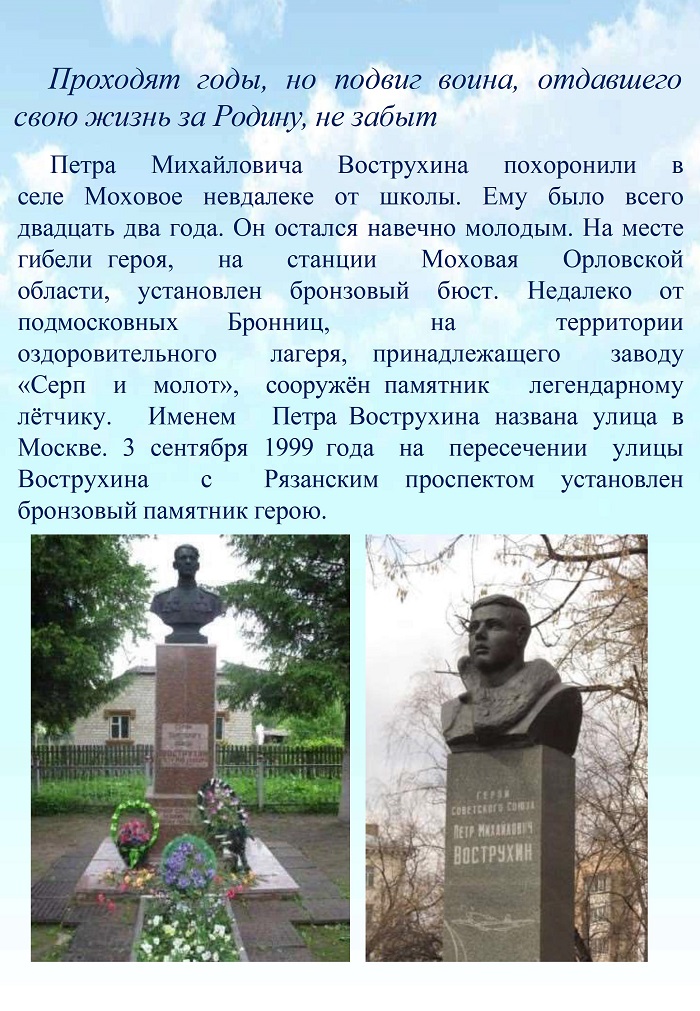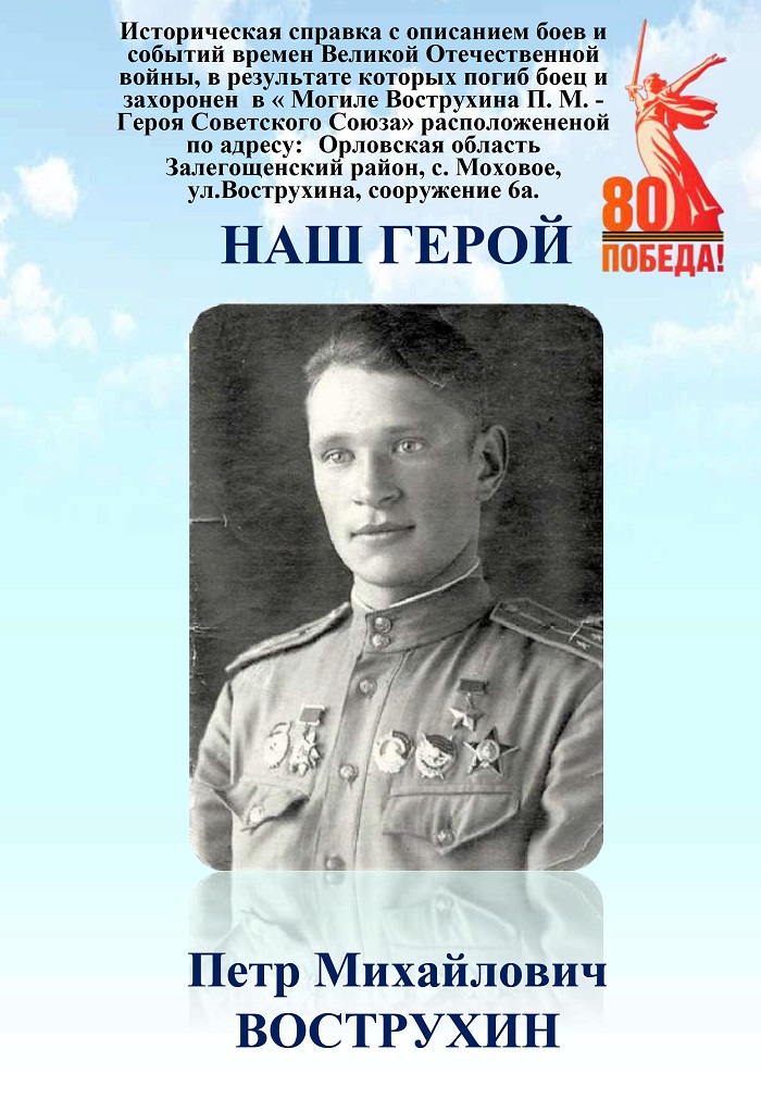 - Могила Вострухина П.М.-Героя Советского Союза (Моховское сельское поселение, с. Моховое, ул. Вострухина, сооружение 6а)
