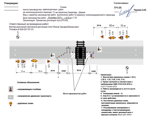 Уважаемые жители Залегощенского района!Орловская дистанция пути ОАО "РЖД" информирует Вас о проведении плановых ремонтных работ на железнодорожном переезде (71 км 8 пк, перегон Залегощь – Дишня).