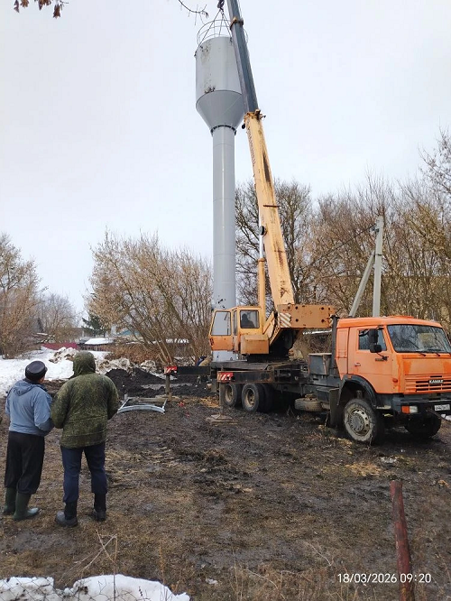 В пгт. Залегощь близится к завершению установка новой водонапорной башни Рожновского на улице Ленина. Оборудование уже приобретено и установлено. В настоящее время специалисты занимаются обустройством колодцев и подготовкой инфраструктуры для подключения башни к сетям водоснабжения.